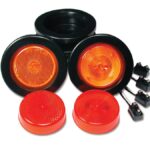 These lights are the standard 2.5″ and fit the 2-1/2 rubber grommet on your truck. ย Standard 2 pin connection as well. ย Available in Red or Amber. ย Reflectors are built right into the lens. ย PC rated, DOT approved. ย Order the “Red Kit” or “Amber Kit” and get the rubber grommet and plug with the light.