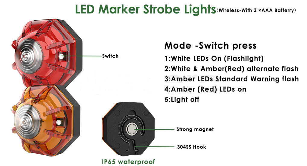 Battery operated dual color safety flashers.ย Choose from Amber/White or Red/White