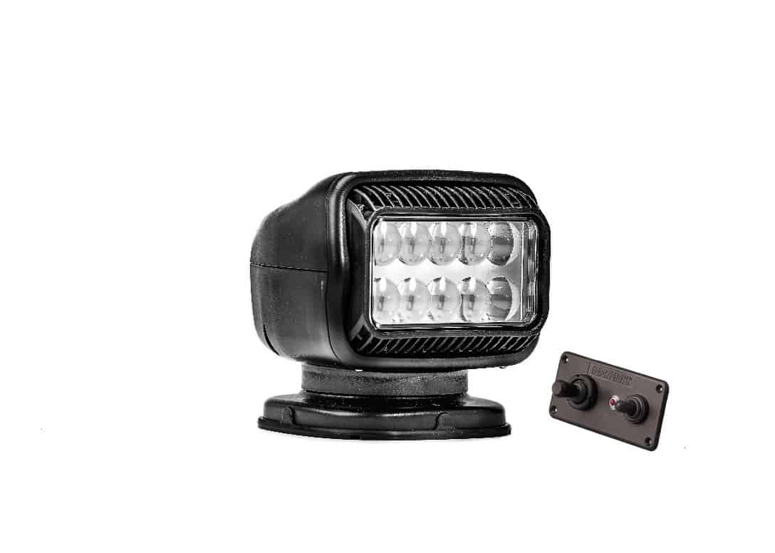 This new model of Golight comes in white or black finish and it has a permanent dash mounted remote and a permanent mounted LED light.