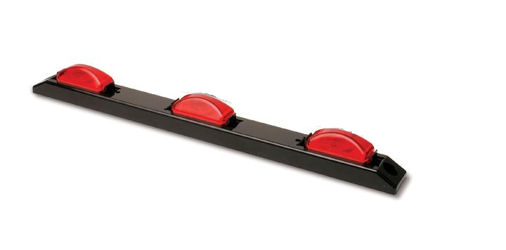 ID light bar with 3 spaced Red incandescent snap in lights, and mounting strip.
