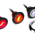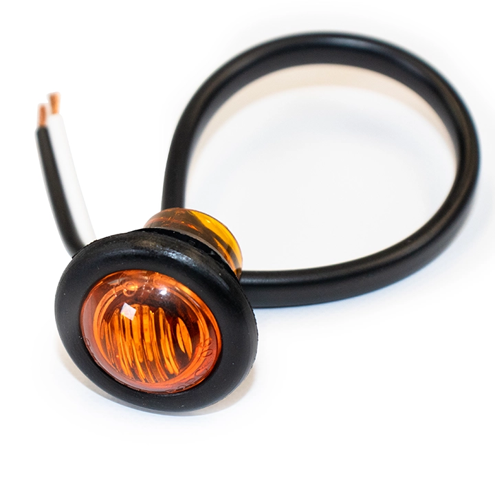 3/4″ diameter LED lights with rubber grommet. Each light has a 2 wire pigtail for 12v and ground wire. Marker lights.