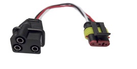 We carry several different plugs for TecNiq brand lights and they also fit many other brands.ย We have 3 pin Amp connectors, 3 pin tri-pole (standard 90 degree) and 2 pin tri-pole (straight plug).ย Also available is a 3 pin tri-pole to amp connector adapter.